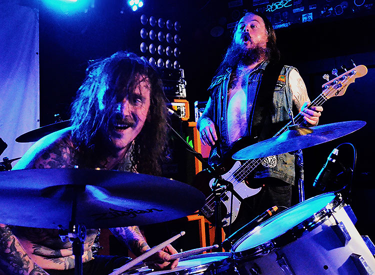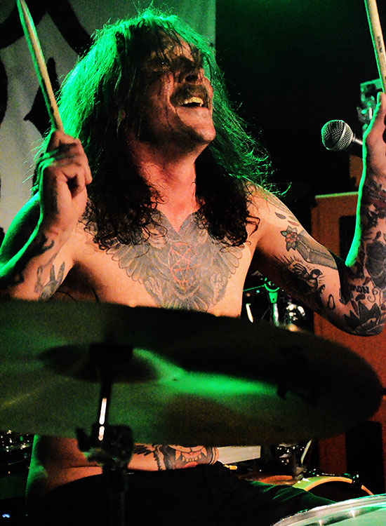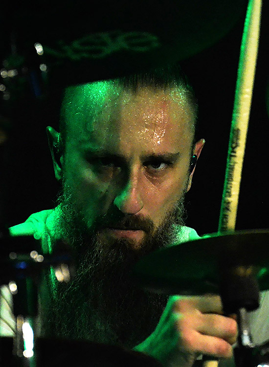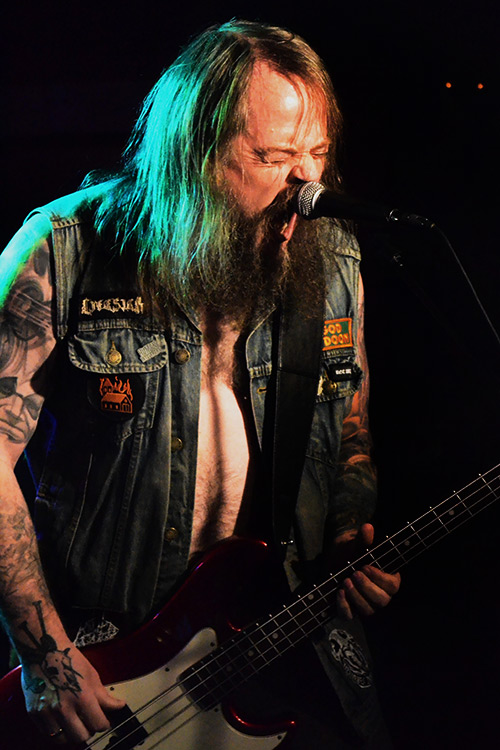 KATLA aus Dänemark also. Was für eine Combo. Ich kannte sie vorher nicht. Ihre Spielfreude, die sympathischen Ansagen und ihr derbes, rifflastiges Zeug zwischen Doom und Sludge, gewürzt mit Black Metal-Gekeife, traten so amtlich Arsch, dass ich meine Kamera zunehmend als Luftgitarre behandelte und headbangte, soweit das mein marodes Gestell noch zuließ.