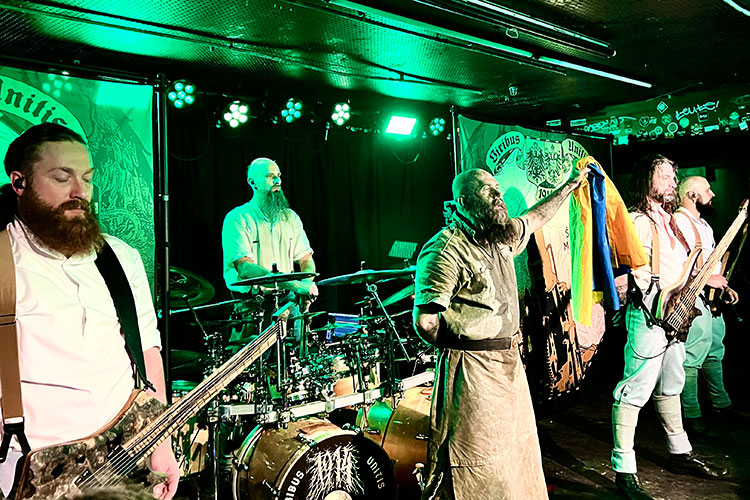 Mir persönlich fällt es schwer, die Stücke einfach nur zu hören und auf deren Unterhaltungsfaktor zu begrenzen – im Gegensatz zu manch Anderen, die bei Gigs in der Vergangenheit wohl keinen Bock hatten, sich mit Politik oder gar Krieg zu beschäftigen. Sänger „k.u.k. Galizisches IR Nr. 15, Gefreiter“ Dmytro Kumar unterbrach den Auftritt zweimal für eine Ansprache – bei einer berichtete er von Stimmen aus dem Publikum des Partisan-Festivals, die von ihm verlangten weniger über Politik zu schwätzen und lieber Musik zu machen. Seine Botschaft an solche Fans: „Fuck You, Cunts!“. Im Nachtleben musste er sich mit solchen Gestalten nicht abmühen, die volle Soli der Beteiligten war ihm und seiner Band sicher. Bei der anderen Ansprache erzählte er über seinen Alltag als Familienvater, der zum Beispiel die Nachricht von der durch russische Drohnen zerstörten Schule bekommt, die seine Tochter gerade besucht.