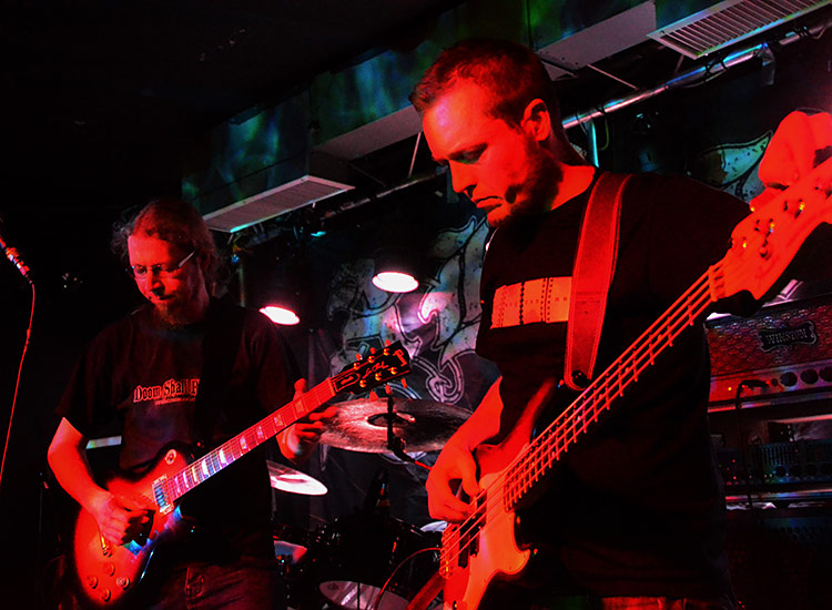 HIGH FIGHTER kommen aus dem schönen Hamburg und setzten nach eigenen Angaben erstmals einen Fuß in das noch schönere Frankfurt. Doomig war das nicht, was das Quintett kredenzte – völlig unpassend war die sehr eigene Mischung aus straightem Hardock auf Bluesbasis mit leicht psychedelischem Gitarreneinschlag aber auch nicht. Mein Gitarre spielender Kumpel, der mit
