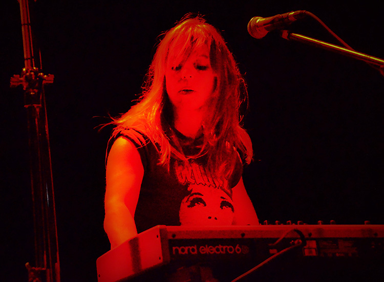 von ihrem Debüt 2011. Mehr als diese Alben wurden auch nicht bespielt, die famose Version von SUICIDEs „Ghost Rider“ (Clip dazu weiter unten) in der Zugabe ist da außen vor. Ein Lied, das Calvi öfter performt, an diesem Abend jedoch besonders zelebriert wurde. Dynamisch ging das Ganze von Laut nach Leise; teilweise wurde geflüstert, ab und an jedoch auch die Rock-Sau bedient – mit fiesem Spiel, das man bei einem Mann „Gitarrengewichse“ nennen würde.