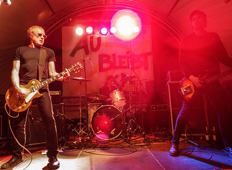 Das klingt zunächst einmal nach einer großen Band, Fakt ist aber, dass die Briten im Laufe ihrer Karriere gerade mal vier Alben veröffentlicht haben, von denen das letzte aus dem Jahr 1988 datiert. Dies hatte zwar den Vorteil, dass die Jungs nur alte „Klassiker“ darbieten konnten, die allerdings kannte kaum jemand. Selbst die erklärten UK-Punkfans konnten vor Ort zum Thema NEWTOWN NEUROTICS nur wenig aussagen, außer vielleicht, dass die Gruppe mit ihrem Debüt „Beggars Can Be Choosers“ ein wichtiges Album geschaffen hat. Insofern war es zumindest schön, dass sich eine Legende wie die NEWTOWN NEUROTICS beim Au-Fest die Ehre gab, und diese wurde auch nicht müde zu betonen, dass sie sehr stolz sei, dort aufzutreten.
