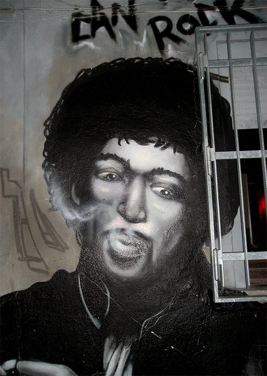 Grüßen von der Außenmauer: Frank Zappa und Jimi Hendrix