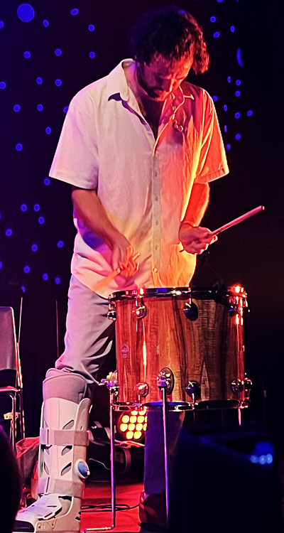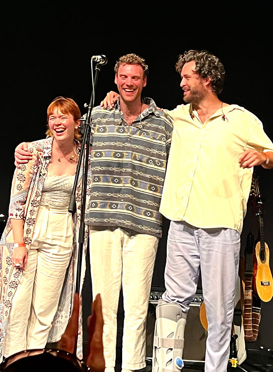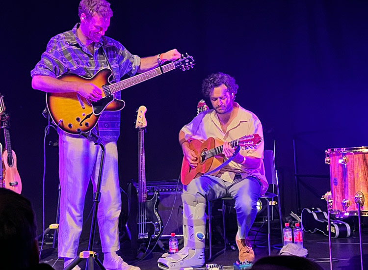 beiden kongenialen Kolleg*innen durch ihre Virtuosität sowie Multiinstrumentalität fast schon als komplette Band durchgehen. Lottie Gabriels Geigenspiel und ihr Background-Gesang war zum Niederknien, Hewes unaufdringliches Spiel ließ immer mal wieder seine Virtuosität durchblicken, die er auch schon auf dem Deutschen Jazzfestival in Frankfurt 2022 offenbarte. Am beeindruckendsten war das bei „Samara“, dem letzten Stück in der Zugabe, dass das Trio laut White am Vorabend „verkackte“ und für dessen Gelingen in Darmstadt keine Haftung übernommen wurde. Es gelang, ganz besonders wegen Hewes, aber ebenso weil es einfach ein hervorragender Song ist, welcher darüber hinaus zu mehr tanzender Bewegung einlädt.