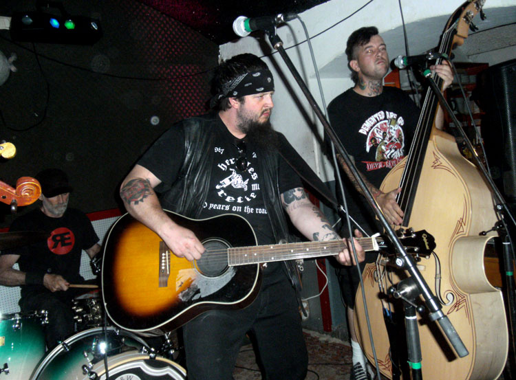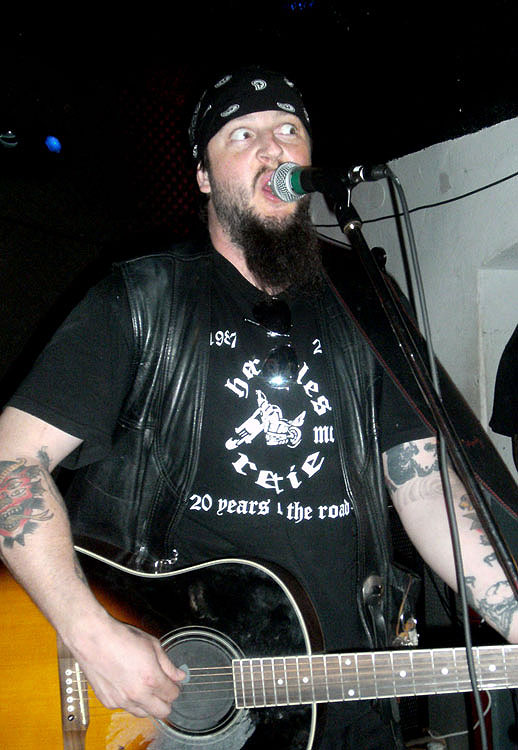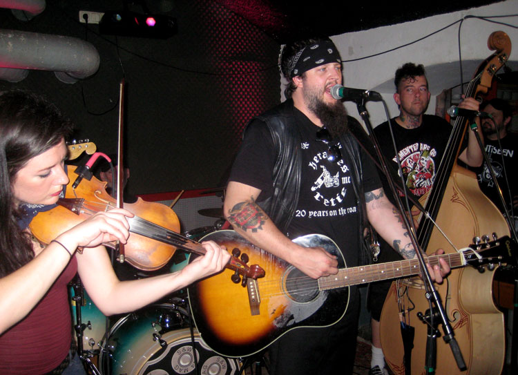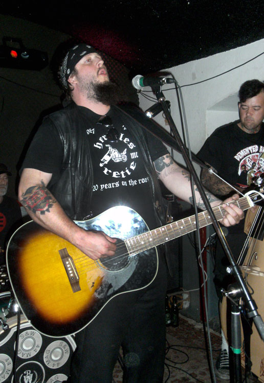 Eine Vorgruppe gab es nicht und so legte Bob gegen halb elf mit dem Opener seiner neuen Scheibe „Till the Wheels Fall Off“ los, der die Anwesenden unmittelbar in Partystimmung versetzte. Die Musik des US-Amerikaners lässt sich wohl am besten als „JOHNNY CASH mit Punk-Attitüde“ definieren,
