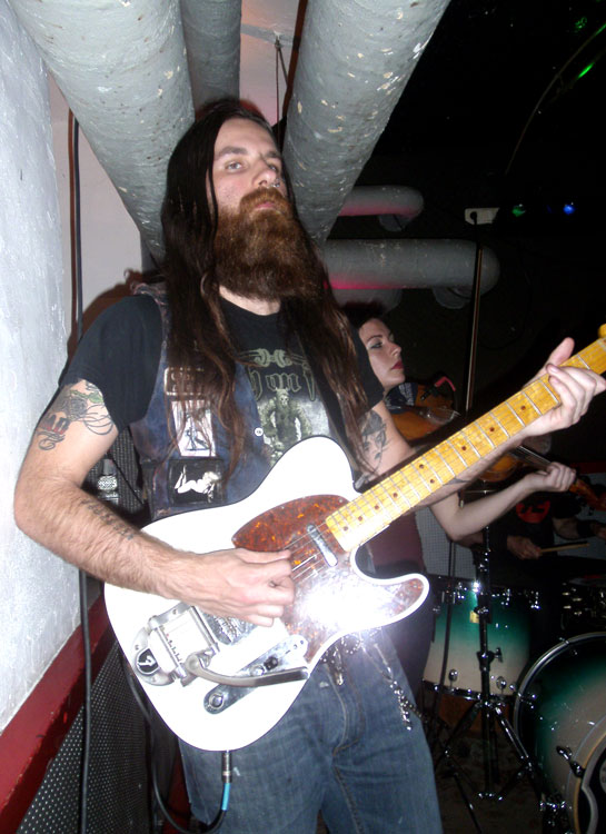 weniger Honkytonk und Hillbilly als bei HANK III, dafür mehr Southern-Rock und Nashville-Sound, stets aber mit einem düsteren Element versehen. Bob blickt bisher auf zwei offizielle Releases zurück und unzählige selbst gebrannte Demos, die live in seinem Trailerhome eingespielt wurden. Dargeboten wurden nahezu alle Songs der beiden offiziellen Alben, die allesamt kleine Geschichten erzählen, in denen es meist um Drogen, Frauen, den Teufel und natürlich um amerikanische Helden und persönliche Erlebnisse geht.Live variierte er zwischen klassischen, hymnenhaften Country-Tracks im Cash-Tempo („Reptile“), schnellen Songs im NINE POUND HAMMER-Stil („Driven by Demons“) und finsteren Balladen („Liza“). Der perfekte Soundtrack zum gemütlichen Feierabend-Besäufnis. Highlights waren die (Jetzt-schon-)Klassiker „Driven by Demons“ (siehe den Clip unten), „Mack“,