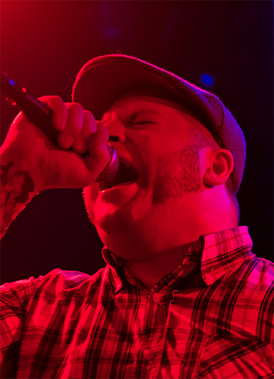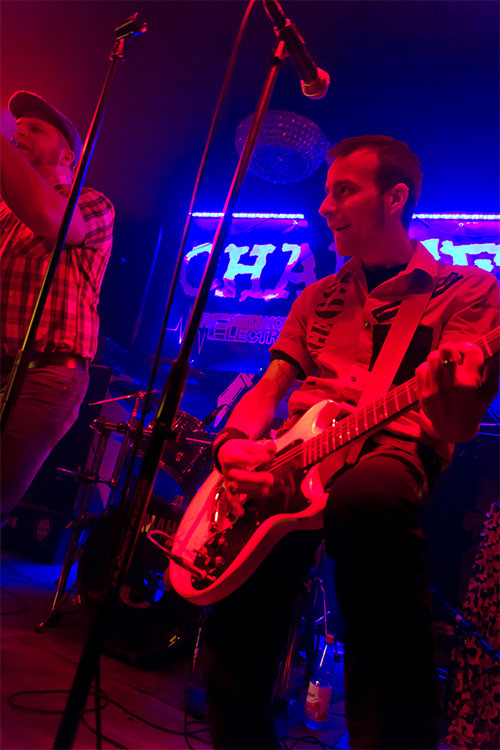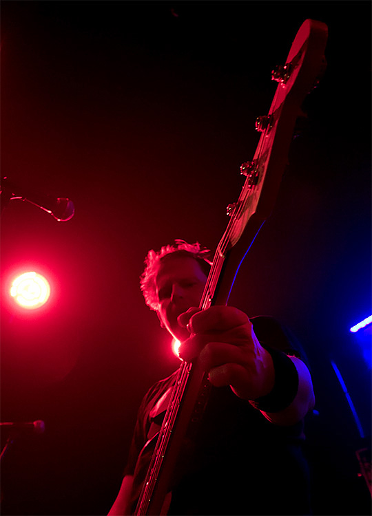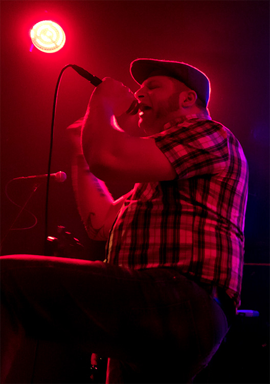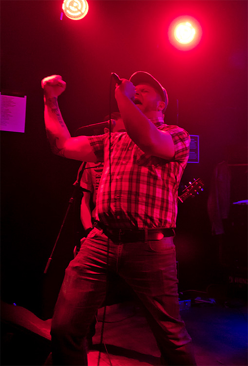 Der Kerl mit Karohemd und Schiebermütze, den ich noch nicht mit der Combo gesehen habe, passt sowohl stimmlich als auch von der Bühnenpräsenz her gut in das Quartett: Sein hemdsärmliges Auftreten verleiht dem Sound, der sich