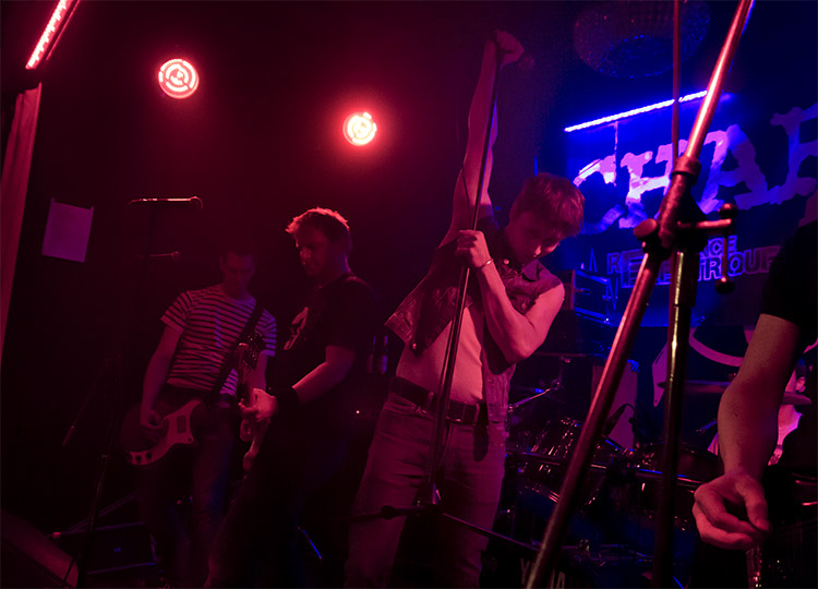 Französischen Punk mag ich, nicht zuletzt gefördert durch mein persönliches, frankophones Umfeld, schon immer. Angefangen bei den längst aufgelösten BERURIER NOIR über altgediente Noch-Aktive wie CHARGE 69 bis hin zu jüngeren, tollen Acts wie LA FRACTION geht da (fast) alles. Eine weitere hervorragende, leider ebenfalls nicht mehr existente Band aus unserem Nachbarland ist LES SHERIFF, deren Split nun schon fast 15 Jahre zurückliegt. Das Erbe der Truppe aus Montpellier zu bewahren und deren Songs der nachfolgenden Generation weitgehend authentisch zu Gehör zu bringen, hat sich eine junge Gruppe aus Frankfurt zum Ziel gesetzt: LES FANATIQUES. Diese spielte nach ihrem Auftritt vor fast zwei Jahren zum zweiten Mal in der Au, diesmal als Support der eingangs genannten älteren Recken von CHARGE 69.