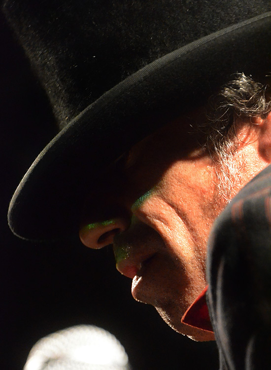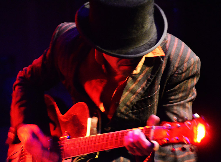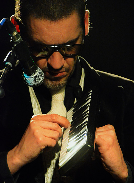 Tó Trips raunte vor jedem Stück mit einer Stimme, die seine Optik sehr gut unterstützte, ins extrem tief gelegte Mikro, wie das nächste Stück hieß und worum es darin in groben Zügen ging. Besonders gut zu verstehen war er