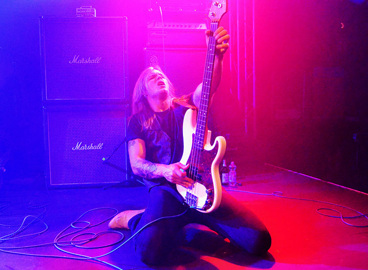 selbst die größten Fans ihres Schaffens sind. Und dem anderer: Nach einem leichten „Since You’ve Been Gone“- Schwenker (RAINBOW) gab es schon ein deutlicheres Zitat später (SLAYERs „Raining Blood“) und ein längeres zum Ende hin (JUDAS PRIESTs „Breaking The Law“). Eines von drei Stücken in der Zugabe war das komplett gespielte „Stone Dead Forever“ (MOTÖRHEAD). Während ich dazu