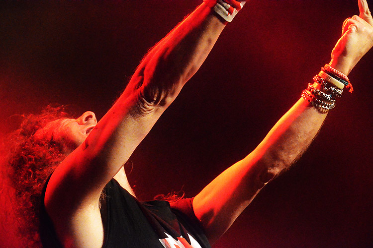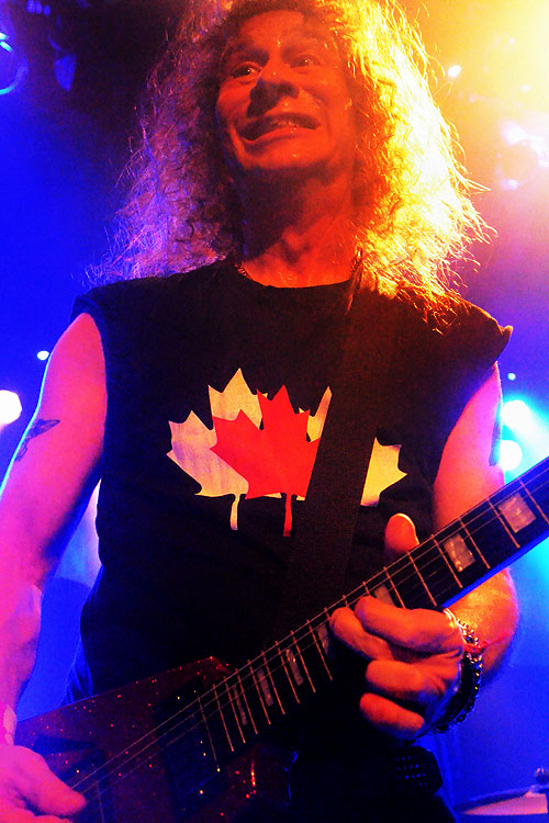 Lemmy gewidmet, zu dem Lips (wie wir alle) aufgesehen hat und der mit ANVIL wohl auch freundschaftlich verbandelt war. Drummer Robb Reiner, neben Lips einzige Konstante in der langen Geschichte der Band, feierte am gestrigen Abend seinen Geburtstag und wurde dementsprechend vom Publikum gehuldigt. Sein Solo war nicht übel und verschaffte Lips und dem Bassisten Chris Robertson eine wohlverdiente Pause. Kurz: Eine ANVIL-Headlinershow geht auch nicht viel länger, ANVIL sind live eine sichere Bank und gehören auf jeder Tour besucht. Von irgendwas müssen die Jungs ja schließlich leben, wenn schon keiner die Platten kaufen mag.