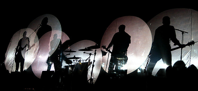 Inzwischen war der Platz vor der Bühne komplett dicht. Durch kam man höchstens im Schlepptau eines Zwei-Meter-Riesen, vorzugsweise mit tätowierter Glatze – dann teilte sich die Menschenmenge auf einmal wie einst das Meer vor