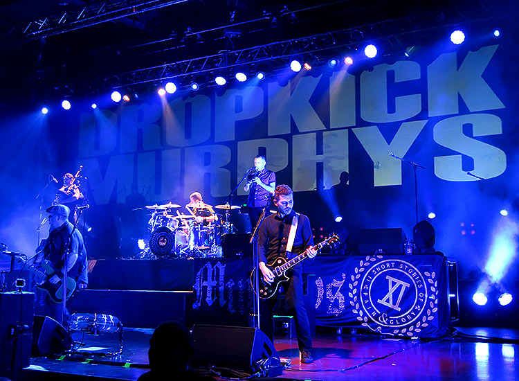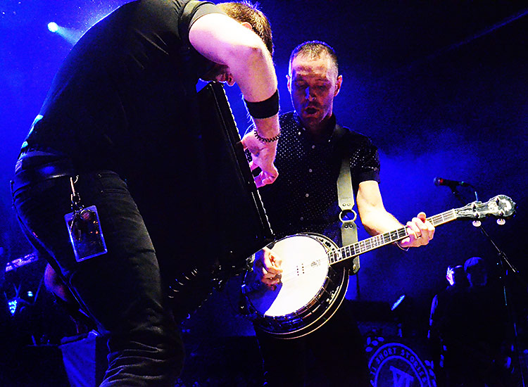 Fotograf, der schon in Düsseldorf dabei war und wusste, dass zuerst ein Instrumental gegeben werden würde („The Lonesome Boatman“ von der aktuellen Scheibe „11 Short Stories of Pain & Glory“). Sehr stimmungsvoller Beginn, der zum Warmgrölen einlud, ohne Worte formulieren zu müssen. „Rebels With a Cause“ folgte postwendend, wie auch auf dem Album. Mit dem dritten Song wurde bereits der erste Klassiker ausgepackt, an dem die MURPHYS-Geschichte inzwischen nicht arm ist: „The State of Massachusetts“, ein Lied, das alles vereint, was an ihnen so geil ist: Flöten, Mandolinen, Chants und Härte, dabei eine gute Story und mitreißende Dynamik.