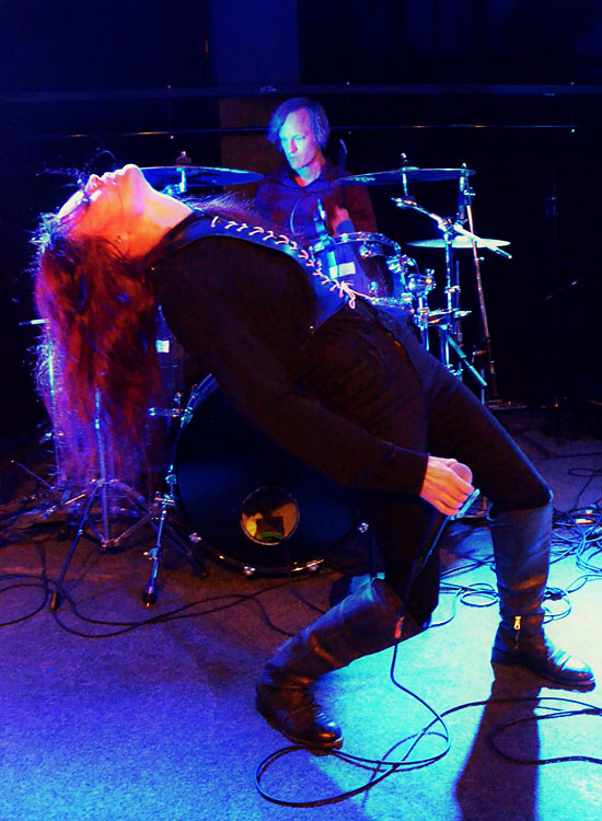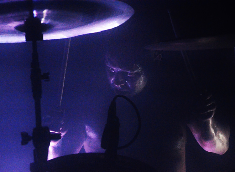 Das sehe ich nicht so, finde es aber durchaus nachvollziehbar. Wie bei einem Verkehrsunfall, bei dem man weggucken will, aber nicht kann, fühlte ich mich festgenagelt vor der Bühne um Hufnagels perfektionistisches Gitarrenspiel und Myers denkwürdigen Ausdruckstanz zu erleben – dazu die Blicke des Taktgebers und Chefideologen, dem anscheinend bewusst war vor einer Horde idiotischer Heiden zu performen,