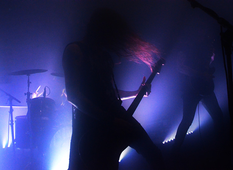 ULTHA aus Köln allerdings auch – nur von „sehen“ konnte man nicht wirklich sprechen: Da war sie wieder, die Düsternis des Vorfestes, sowie der Nebel, der aus Individuen ein Kollektiv spinnt. Fünf Musiker (auf den Pressefotos nur vier), deren Namen lediglich mit einem Buchstaben abgekürzt werden (deren Identität aber leicht herauszubekommen ist), überzeugen gerade mit ihrem dritten Album „The Inextricable Wandering“ die Metalwelt – mit einem Black Metal,