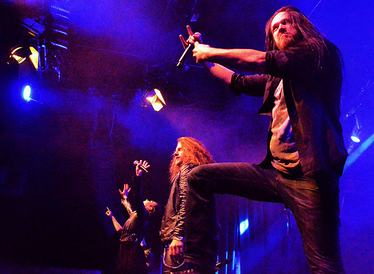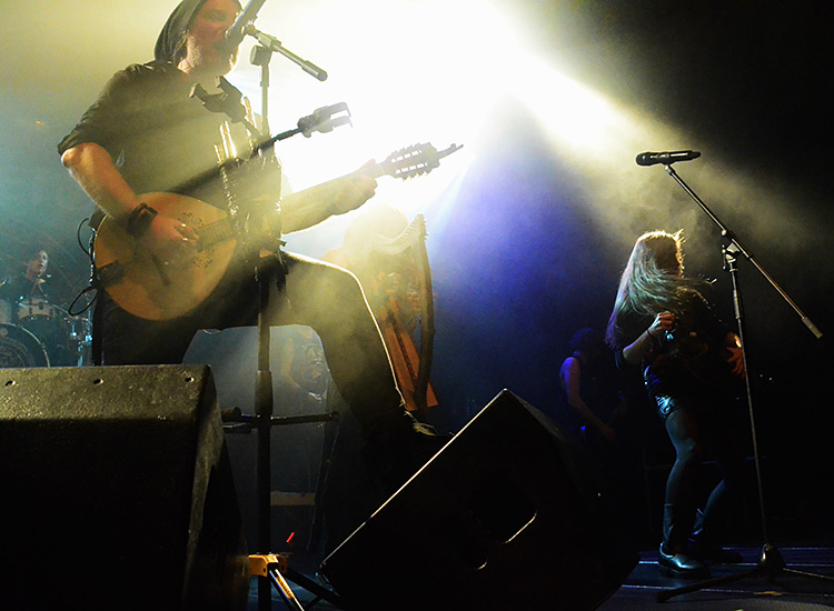 E-Gitarren, Flöten, Schlagzeug, Mandoline, Geige… Was bei den DROPKICK MURPHYS im Punk funktioniert, tut es hier auch im Metal. Nach ein paar Stücken dann die Ansage, dass nun ein paar akustische Nummern kämen und ob das okay wäre – war es natürlich, vor allem, wenn die kein Stück weniger tanzbar sind als die vorher gespielten elektrischen.