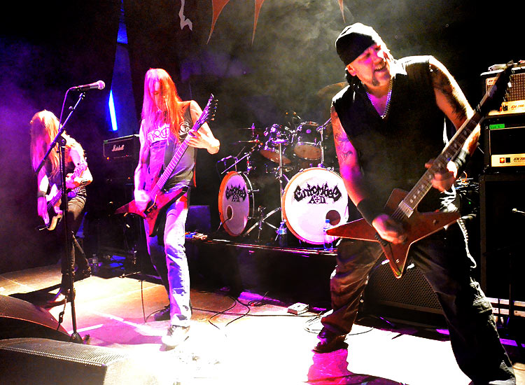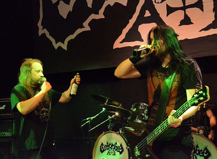 in der Zugabe, Oldies wie „Stranger Aeons“ oder „Wolverine Blues“: Die strikten Todesblei-Enthusiasten wurden genauso bedient wie die Freunde der Death’n’Roll-Scheiben. Petrov und seine Kollegen versprühten selber jede Menge Spaß und Enthusiasmus und feierten einige Bierchen zwitschernd genauso wie ihre Anhänger im