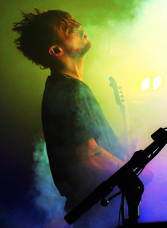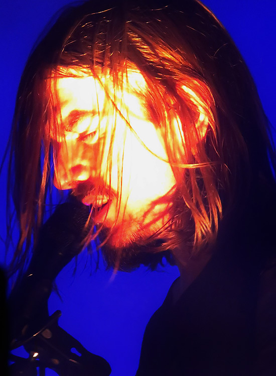 Ebenfalls analog zum Black Metal fahren FJØRT ein fulminantes Lichtspektakel auf, bei dem von der Bühne aus in erster Linie die Gäste illuminiert werden und nur in zweiter Linie die Musiker. Das Instrumental „Nuri“ leitete den Auftritt ein, mit „In Balance“ wurde anschließend ein Song des Vorgängeralbums „Kontakt“ (2016) bemüht, bevor mit „Eden“ der erste von acht „Couleur“-Krachern kam. Und Kracher sind es wahrlich: Wirken die Sprachrohre Hell und Frings in ihren Ansagen wie Hippies, so brennen sie instrumental die Bude ab, dass es eine Art hat. Wären einem die Texte egal, dann bliebe immer noch ein enorm extravaganter Klangteppich, der seine vorhandenen Einflüsse zu etwas Neuem und Besonderen formt.