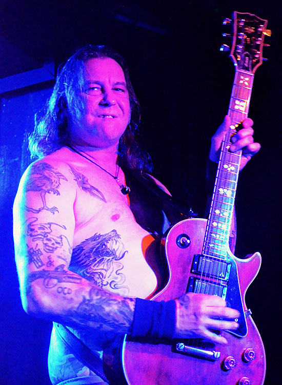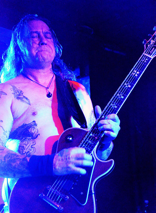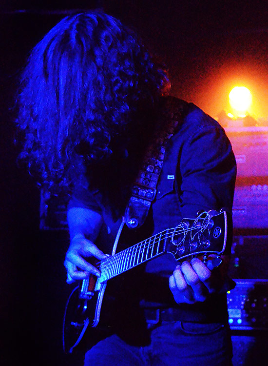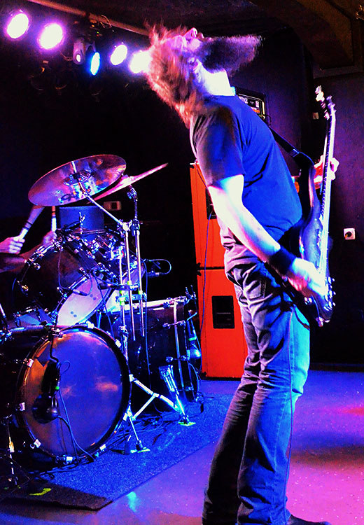 Kalorien verbrennt er mit seinen beiden Mitstreitern, dem Bassisten Jeff Matz sowie dem Drummer Des Kensel, jedoch recht ordentlich. Einen Tag zuvor bespaßte das Trio noch das Desertfest in Berlin, von dem auch zwei mir bekannte Frankfurter Fans erschöpft, aber glücklich an diesem Montag zurückkehrten, um sich anschließend sofort den fulminanten Derbrock in kleinerem und damit stimmungsvolleren Ambiente zu geben. Lauter Anwesende mit höchstem Einsatz also vor Ort. Und doch muss der Opener, die Thüringer Band MOTOROWL, vor einem Minimum an Volk auf die Bühne. Auch diese armen Kerle können einem leid tun.