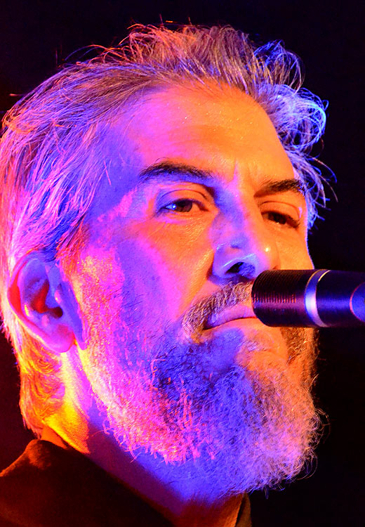 Das erste Drittel der knapp 90 folgenden Minuten war das für mich musikalisch interessanteste, weil von drei superben Gitarren veredelt (Christof oder Christoph war schon wieder weg, sonst wären es vier gewesen). Mr. Gelb intonierte ein Stück, sinnierte und kam dann zu dem Schluss, das jetzt dasselbe Lied noch mal kommen müsse. Allerdings mit anderer Melodie. Und anderem Text. Alle hingen der beeindruckenden, piekfein gestylten Figur an den Lippen (einschließlich der Mitmusikanten); es wurde entspannt und erlesen dargeboten und wirkte sehr spontan, was es wahrscheinlich gar nicht war. Songs von Gelb habe ich kaum bis gar nicht im Ohr, die aktuelle Scheibe „The Coincidentalist“ habe ich mir vor dem Konzert