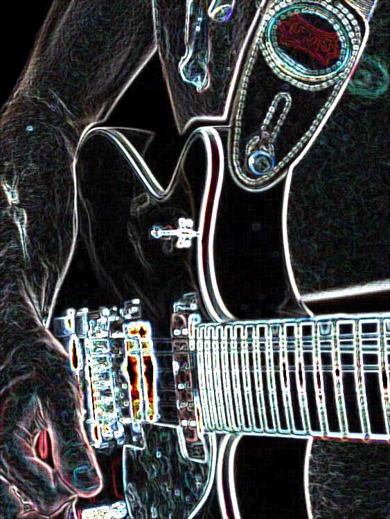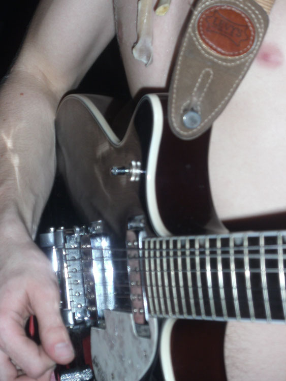 Bild 3 (links): Gitarre beim Konzert von WILD EVEL & THE TRASHBONES im Ponyhof (F) am 22.10.2011 – Originalfoto im Bericht nicht verwendet, ein Ausschnitt des Bildes ist aber unser Twitter-Logo