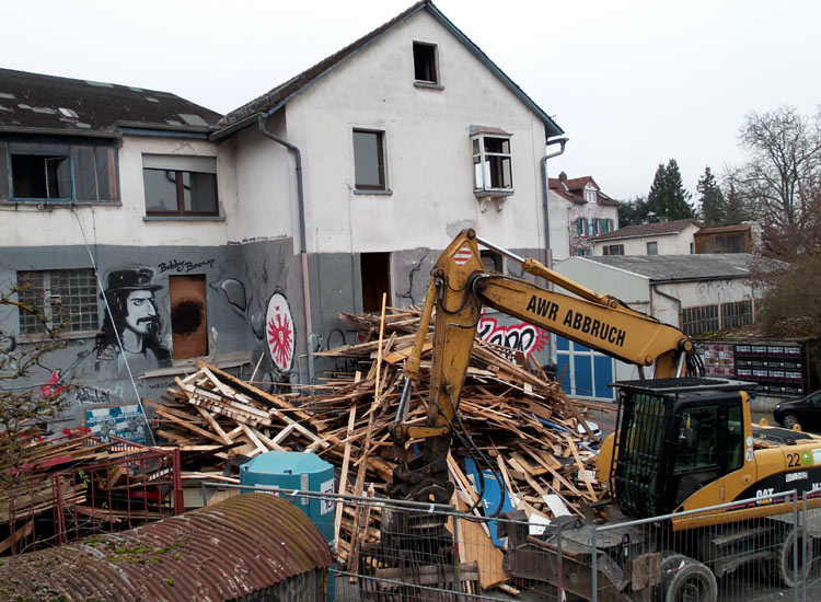 In der neuen Batschkapp bin ich noch immer nicht gewesen, irgendwie zielt das Booking an meinem Geschmack vorbei und ich habe in der Regel auch keine Lust auf drängelige Hallenkonzerte. Die alte Kapp bietet derzeit ein trauriges Bild. Wer nochmal einen Blick auf sie werfen will, sollte das wohl bald tun, bevor sie dem Erdboden gleich gemacht wird.