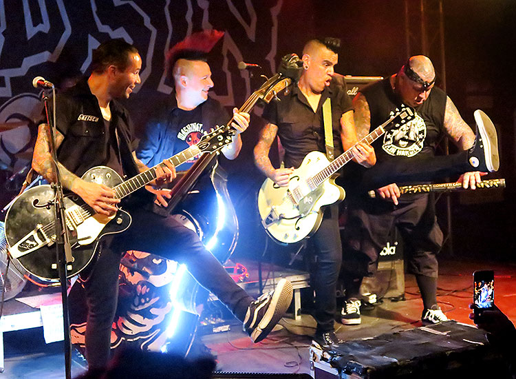 Reich an guten Shows war dagegen der Juni. Er begann mit den brasilianischen Rockabillies LUIZ FIREBALL & THE GOOD LOOKIN’ BOYS im Dreikönigskeller. Die Jungs sahen zwar – was auch die anwesenden Damen bestätigten – nicht ganz so gut aus wie gedacht, spielten dafür aber umso besser.