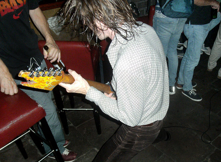 Das Fuzz-Rock-Trio aus dem kalifornischen San Diego ließ den DKK zur Sauna mutieren, allen voran Bandboss Pat Beers, der auf der Bühne und im Zuschauerraum Bewegungen darbot, wie ich sie im Rahmen eines Gigs