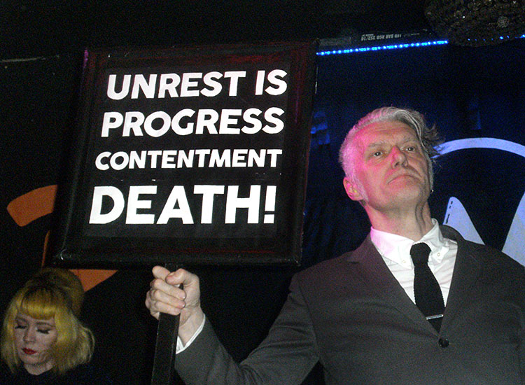 Rockabilly, Chanson und Folk. Das Ganze wird dann noch durch den Einsatz von Licht und skurrilen Kostümen zu einem besonderen Genuss. Auch die Show im Zoom fand – Duplizität der Ereignisse – ihren Abschluss vor der Bühne und inmitten der Fans, wie im folgenden Videoclip zu sehen: