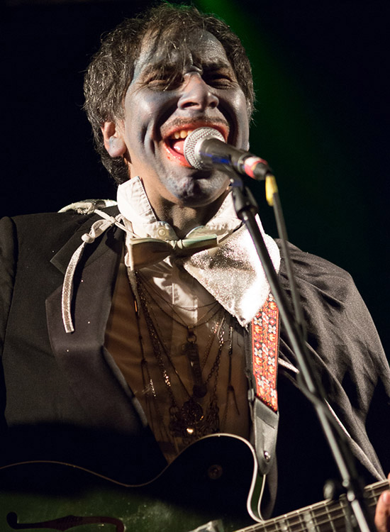 Als Opener des Abends sollte eigentlich die schottische Singer/Songwriterin Laura St. Jude agieren, die jedoch krankheitsbedingt ausfiel, sodass zunächst die DJs Konrad und Svenghouly für die passende Einstimmung auf das folgende Spektakel sorgten. Als Kid Congo das Podest betrat, fiel zunächst sein schräges Outfit auf: Der inzwischen 58-Jährige hatte sein Gesicht ganz in blau geschminkt und trug einen Umhang, wie einst Bela Lugosi im ersten „Dracula“- Film.