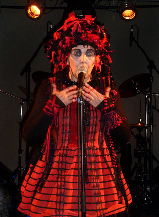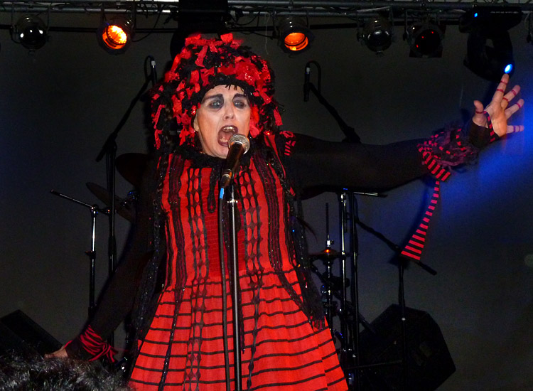 Bevor Lene mit ihrem Gefolge die Bühne betrat, gab ihre Keyboarderin Kirsten Morrison a cappella arienhafte, vermutlich klassische Songs zum Besten und zwang damit einen Großteil der Besucher zur Flucht an die frische Luft. Eine gewöhnungsbedürftige Darbietung, die ihr aufgrund des hohen Gesangs noch während des Abends den Spitznamen „Die Blechtrommel“ einbrachte – auch das Publikum war kreativ. Dann schließlich war es Zeit für Lene Lovich, die das Konzert mit „What Will I Do Without You?“ vom „Flex“-Album eröffnete.