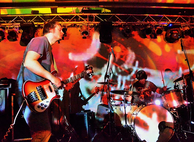 meiner kleinen Konzertreise. Großartige Interaktion, viel Raum für Improvisation und dabei ungewöhnliche Arten, Bass und Gitarre zu spielen, schufen ein schwarzes Soundloch, in dem fast alle Eindrücke vorher kathartisch implodierten. Uhrzeit? Unwichtig. Wie heimkommen? Uninteressant. Ist das überhaupt noch Rockmusik?