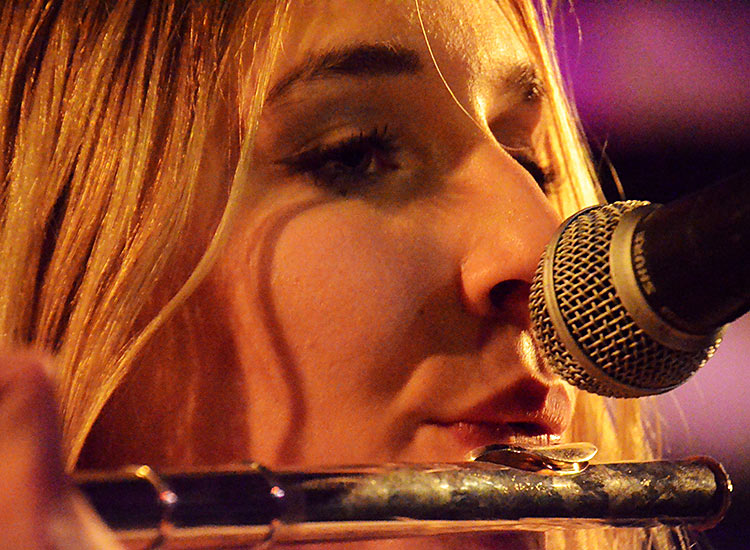 derselben Bühne stand) tütete die Band mit „Sow The Wind“ ein begeisterndes Stück Musik ein, dessen Klimax das knapp 15-minütige „Wandersmann“ darstellt, welches zudem noch eine Referenz an Bands wie OUGENWEIDE darstellt– auch Abschluss der gestrigen Show (Clip dazu weiter unten). Die Multiinstrumentalistin Francis Tobolsky dominiert das Quartett dabei schon durch ihre Arbeit an Flöte,
