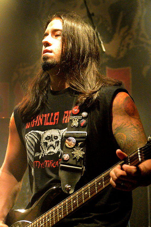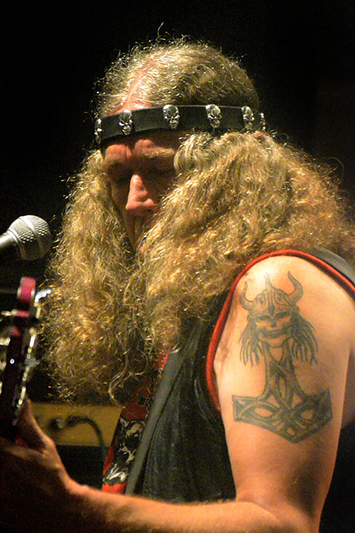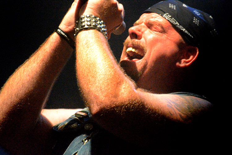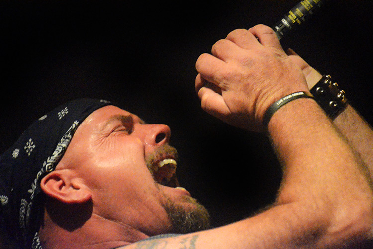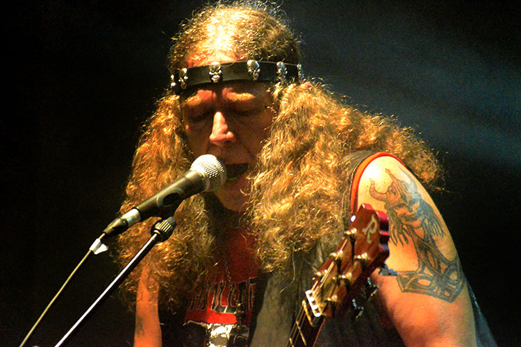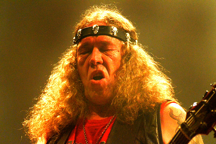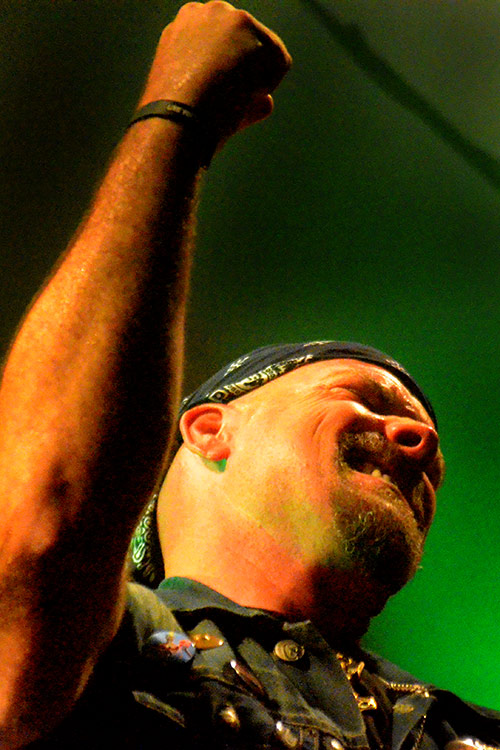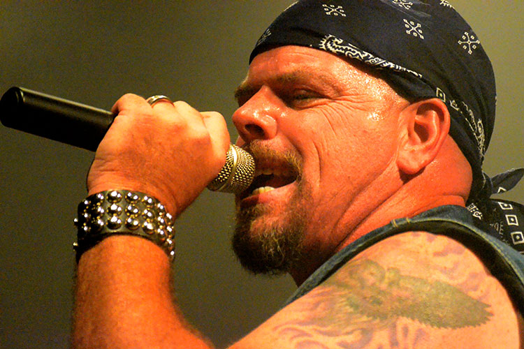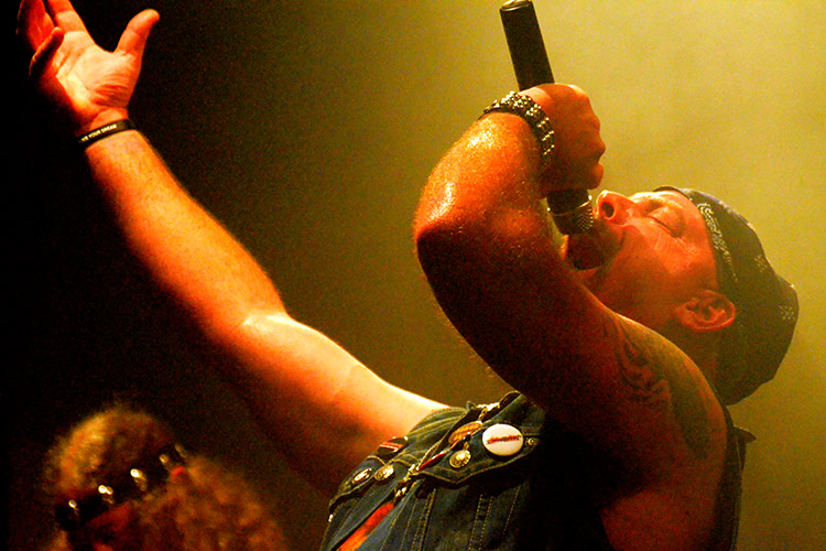 Zumindest live hält er sich inzwischen als Sänger zurück, um sich aufs Gitarrenspiel zu konzentrieren. Mit dem Ex- Roadie Bryan Patrick (rechts) wurde ein neuer Shouter gefunden, der Sheltons Gekrächze erstaunlicherweise nahezu perfekt imitiert. Als Drummer fungiert seit 2011 der Deutsche Andreas Neuderth, der auch bei ROXXCALIBUR und dem Opener MASTERS OF DISGUISE tätig ist.
