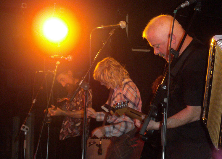 Nach längerer Zeit lockte mich wieder ein interessantes Konzert in den Sinkkasten Arts Club (SAC): Die MEKONS, die Ende der 70-er in England als Punkband ihre ersten Platten veröffentlichten, inzwischen aber vom Folk und Country inspirierten Rock der amerikanischen Schule spielen, gaben sich die Ehre. Von den sechs Gründungsmitgliedern, allesamt Kunststudenten (!), stand mit Jon Langford noch einer auf der Frankfurter Bühne, aber auch die anderen Musiker sind schon mindestens seit 20 Jahren, die meisten bereits seit Mitte der 80er dabei.