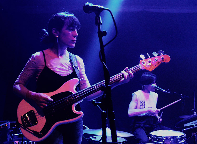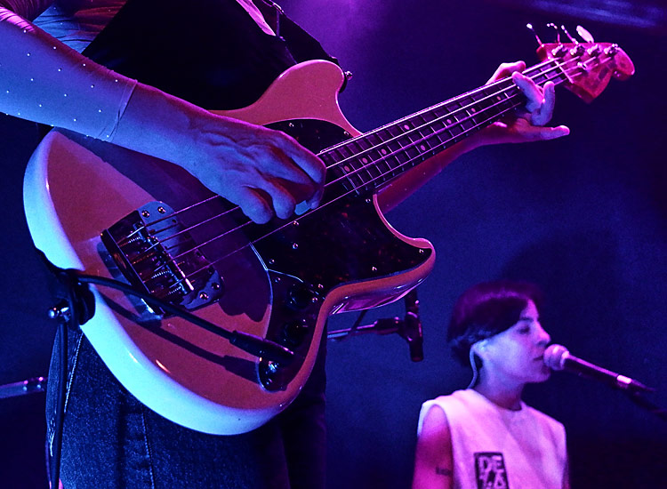 Eine anfängliche Schüchternheit der Akteurinnen wich rasch maximaler gegenseitiger Begeisterung, bei Stücken wie „Bang“ oder „Primer Tiempo“ tanzten alle, die Mädels aus Mannheim schrien sich dabei den Hals wund. Ein bisschen Verwunderung herrschte bei den Ladies aus Pamplona schon darüber vor, dass sie so abgefeiert wurden, eben auch von der nicht-spanisch-sprechenden Bevölkerung im Saal. „Ihr fühlt es einfach“, resümierte Schlagzeugerin Lauri, während sich Bassistin Leire eine Trinkpause gönnte.