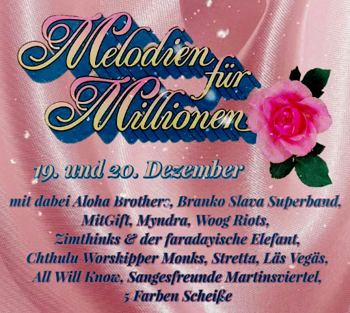 Jedes Jahr pilgern mehrere hundert Menschen kurz vor Weihnachten zu einer zweitägigen Veranstaltung, die ihresgleichen sucht: Unter dem Motto „Melodien für Millionen“ (MFM) spielt ein gutes Dutzend Darmstädter Bands zur Belustigung des Publikums im großen Saal der Knabenschule auf. Sie müssen nur eine einzige Regel beherzigen: Sämtliche präsentierten Lieder dürfen ausschließlich Coversongs sein. Heraus kommt eine extrem wilde Mischung – wo sonst hört man unter anderem die Hits von IDEAL, PEARL JAM, TURBONEGRO, BLACK SABBATH, THE POLICE, IRON MAIDEN, DIE ÄRZTE, ACHIM REICHEL und den PIXIES an einem Abend, oft vorgetragen in einem völlig anderen musikalischen Gewand und in bizarren Kostümen? Wir nahmen die 2025er-Ausgabe des beliebten Spektakels zum Anlass, mit Jule und Jürgen aus dem Organisationsteam ein Interview zu führen.