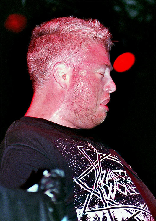 absolut textsichere Fans am Start. Die überschaubare Meute hielt sich noch ziemlich zurück und bildete statt Moshpit einen Halbkreis der stummen Andacht vor der Bühne, der flugs von den beiden Vokalisten übernommen wurde. Die Vorsicht der meisten Betrachter sorgte für ein paar sarkastische Sprüche der CHAOSFRONT-Musiker, in denen fortgeschrittenes Alter und die damit verbundene Ruhe eine Rolle spielten. Mindestens zwei Fans gingen aber die ganze Zeit steil und duften auch ab und an ins Mikro grölen. Die Stimmung war schlussendlich so gut, dass die Herren sogar als einzige Vorband noch eine (Mini-)Zugabe spielen durften/sollten. Geile kleine Privatparty, die die meisten qualmend in der Sonne verpasst haben.