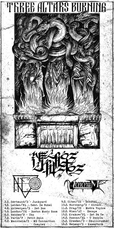 Ich habe lange überlegt, ob ich überhaupt eine Review zu diesem Abend verfassen soll, trotz aller Begeisterung für VENENUM und auch NECROS CHRISTOS. Die spielten am Ende satte 65 Minuten, unterteilten Ihr Set durch live gespielte Temples & Gates und beglückten die Anwesenden aufgekratzt auch