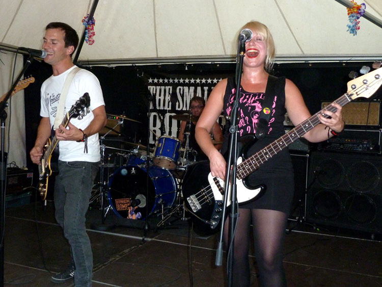 eigentlich nur für diejenigen zu sehen, die sich in schräger Blickrichtung zur Bühne aufhielten. Schade, aber andererseits auch verständlich, sollte die Schießbude doch nicht für jede Band neu und ständig an anderer Stelle aufgebaut werden.Beim Publikum erntete das Duo, das die meisten Gäste noch nicht kannten, viel Lob. Dem stimme ich gern zu: Unkonventionelle Musik mit Ecken und Kanten, tight gespielt – intensiv und eindrucksvoll. Unser Clip des Songs „Beat Sex“ weiter unten (leider mit etwas knarzigem Ton) vermag hoffentlich einen Eindruck davon zu vermitteln.