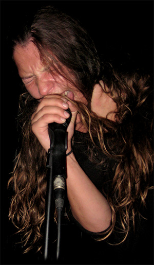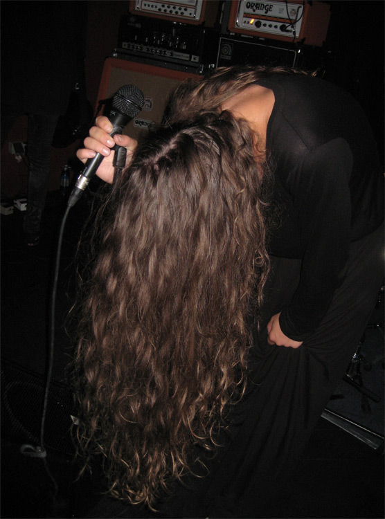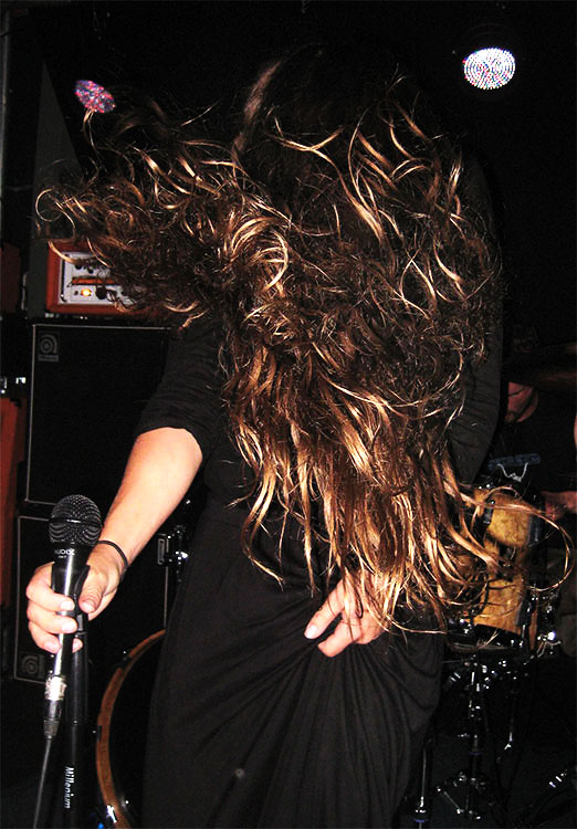 standen, erklomm plötzlich eine junge Frau in einem engen schwarzen Kleid das Podest und entpuppte sich als Sängerin. Nachfolgend wurde das Licht gedimmt und die Band legte los mit einem ultraschnellen Dampfhammer, der das Publikum wie eine Abrissbirne erwischte. Es sollte der härteste Song des Gigs bleiben, aber auch die folgenden Tracks hatten es in sich.