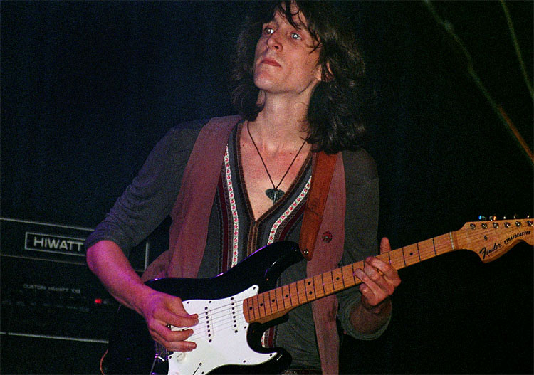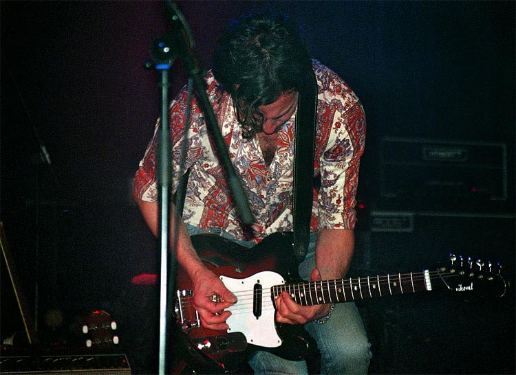 Während man bei ORCHID gar nicht anders kann als SABBATH zu fühlen, so ist David Gilmour (PINK FLOYD) natürlich glasklar aus dem Spiel des Gitarristen Philip Méloi (Foto rechts) herauszuhören, macht ja auch nichts. Zusammen mit den anderen Bausteinen, der rhythmischen Raffinesse von Schlagzeuger Robi Herz, dem gefühlvollen Gesang seines Bruders Benno Herz sowie dem abgefahrenen Soundteppich Nicolai Hildebrandts entsteht ein völlig eigener, mitreißender Klangkörper, der einen in einen Sog zieht und geplättet wieder ausspuckt.Ganz großes Kino, bei dieser Releaseparty in Darmstadt (das zweite Album „Tales Of Transit City“ erschien just an diesem Tag) erfreute das zwei Stunden lang, teilweise mit Unterstützung zweier Bläser sowie der Vorband BEES VILLAGE. Neil Young’s „Southern Man“ wurde am Schluss auch noch gecovert; hätte ich eher für einen Einfluss der mit OKTA LOGUE befreundeten BEES VILLAGE aus Friedrichsdorf gehalten, aber das zeigt ja nur wieder meine Beschränktheit.