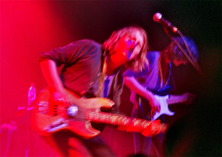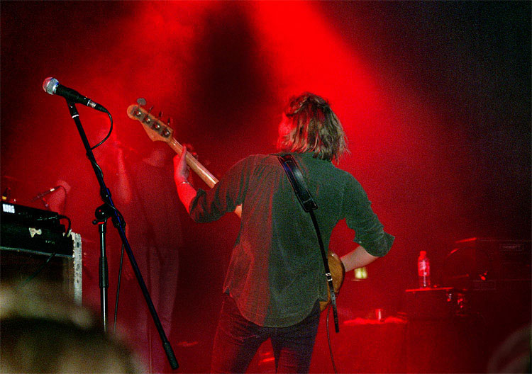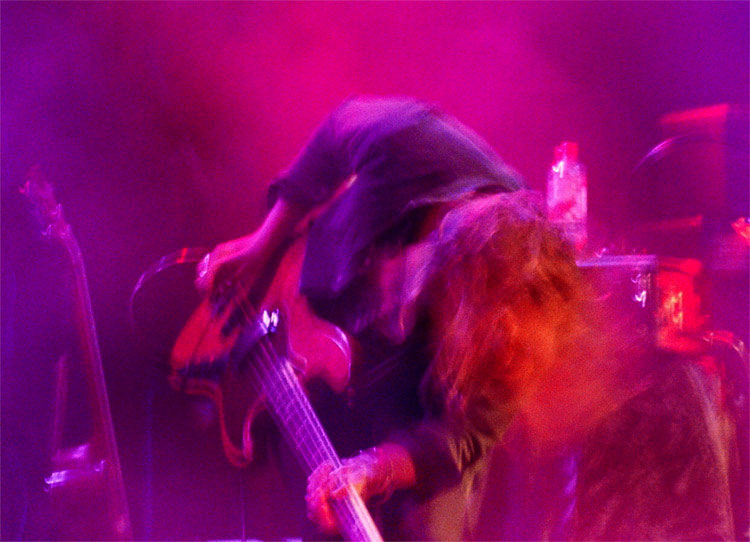 Ich mag die Centralstation auch, weil mich dort niemand am Fotografieren hindert. Im Gegensatz zu anderen Läden. Dann dachte ich mir noch, bei den internationalen Bands wie RIVERSIDE oder MOTORPSYCHO wird es bestimmt sauvoll, mache ich eben nur Bilder bei den Lokalmatadoren, da ist ja wohl einiges mehr an Bewegungsfreiheit zu erwarten. Selten lag ich falscher. Bei den Skandinaviern wurde durch die bewegliche Theke der Raum fast halbiert, bei OKTA LOGUE platzte der Laden aus allen Nähten.