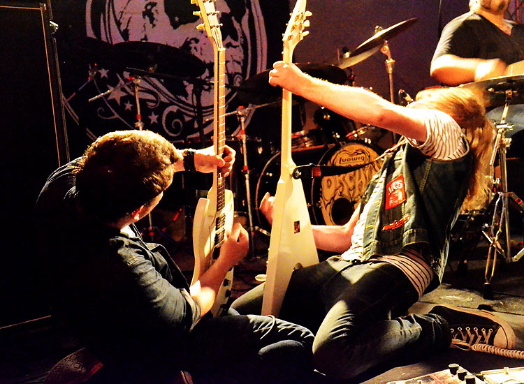 Da ich diesmal ausnahmsweise zu früh im Club erschien, hatte ich Gelegenheit, mit Sänger Theo und Gitarrist Mark ein paar Worte zu wechseln. Dabei fiel mir auf, dass die beiden nicht nur zu den angenehmsten und