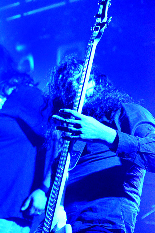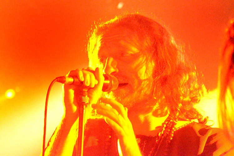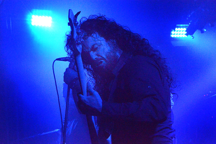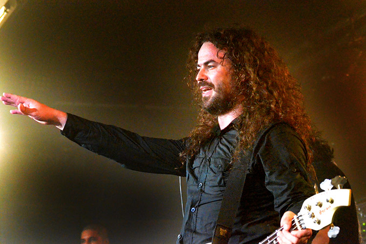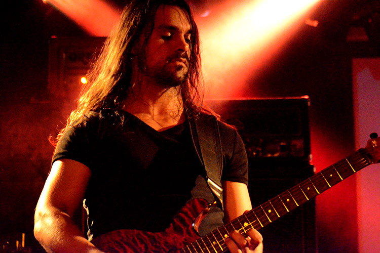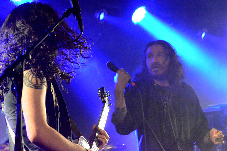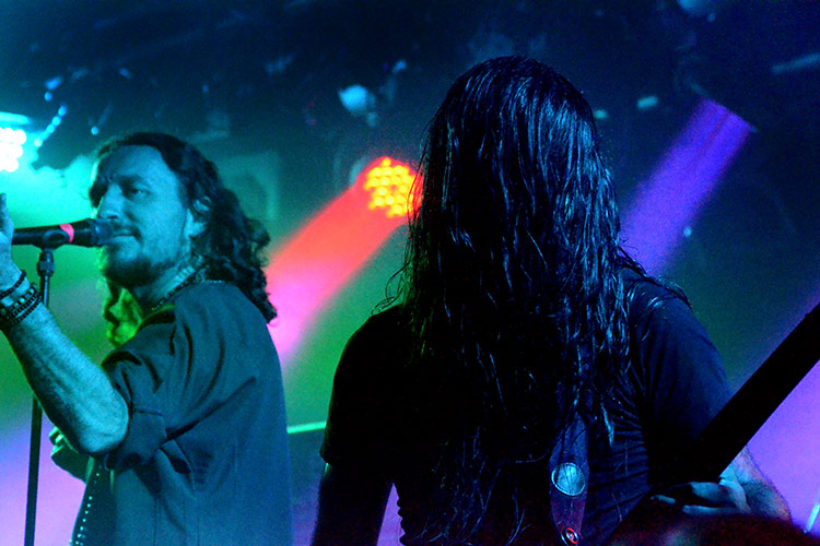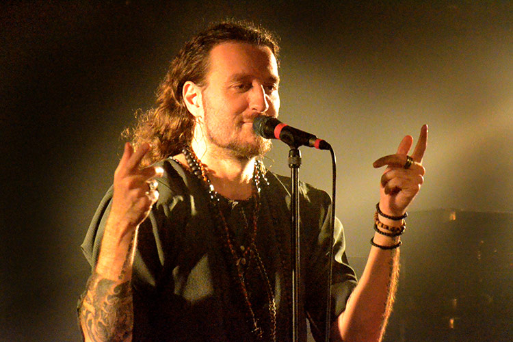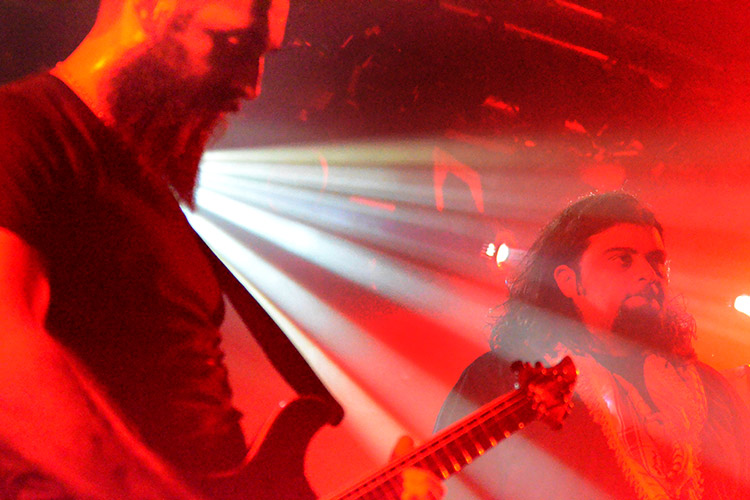 Frankreich, Jordanien und Israel: Aus diesen drei Ländern kommen die vier Formationen, die gestern abend im Aschaffenburger Colos-Saal aufspielten. Alle sind im weitesten Sinne dem „Progressive-Metal“ zuzuordnen – und wer damit ambitionierten Songaufbau mit artistischen Griffbrettbearbeitungen assoziiert, liegt nicht ganz falsch. Auch nicht damit, dass das sogenannt „progressive“ in dieser Musik eigentlich ein alter Hut ist und bestimmt nicht mit Innovation verwechselt werden darf. Aber die Headliner ORPHANED LAND (Fotos rechts und unten) aus Israel sind ideologisch mehr als innovativ, dazu noch äußerst tanzbar und überhaupt eine ziemlich geniale Band.