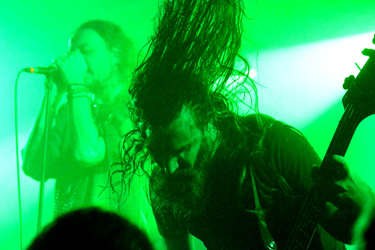 Frontmann Kobi Farhi (links), barfüßig und mit einem Einteiler bekleidet, wies das Publikum darauf hin, dass er „nicht Jesus ist“, obwohl er so aussieht und auch ähnliche Inhalte predigt. Danke dafür, das hätte sonst ins Auge gehen können bei der Berichterstattung. Im Gegensatz zu BILOCATE hört man bei ORPHANED LAND viele orientalische Instrumente, die aber leider vom Band kamen oder sonstwie abgerufen wurden – auf der Bühne stand Metal as usual. Gerne würde ich die Band mal sehen, wie sie live alle Klänge fabriziert, die man von ihnen zu hören bekommt. Mit ihrer folkloristischen Ausrichtung würden sie auch sehr gut ins Paganfest-Billing passen, falls die Fans des dort vertretenen Folk-Metal auch Folk goutieren, der nicht keltischen oder nordischen Ursprungs ist.