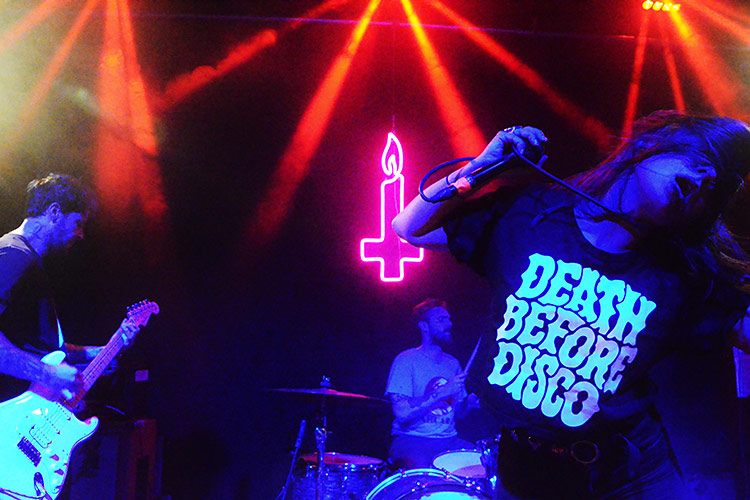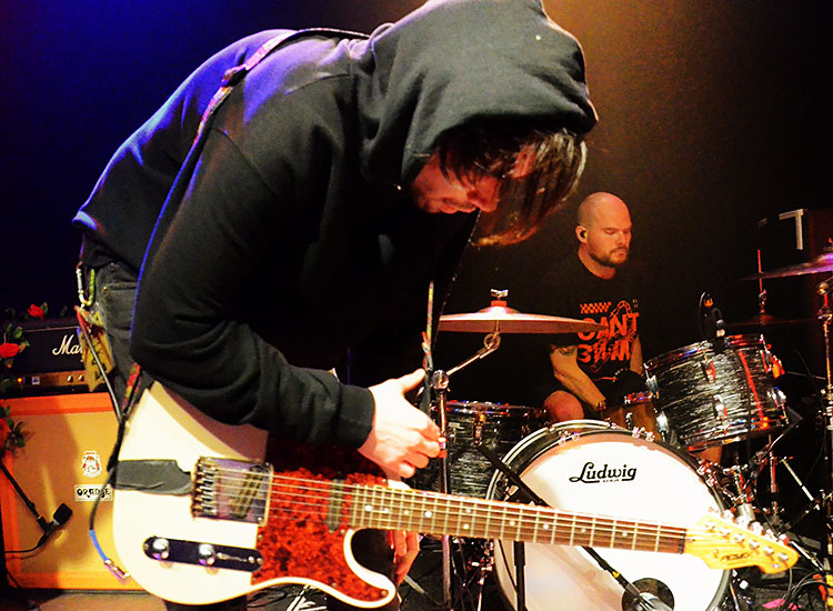 Aussage. Dafür verschafft Stereogum Abhilfe, erzählt hier interessante Hintergründe zu den Ursprüngen und Themen der 2012 gegründeten Formation. Rein musikalisch jedoch kackten die US-Amerikaner in meiner Welt gegen die folgenden Australier extrem ab. Zwar war das Quartett mit vollem Körpereinsatz dabei und bewegte sich wie eine exaltierte Stoner-Band, fabrizierte jedoch Klänge zwischen Heartland- oder
