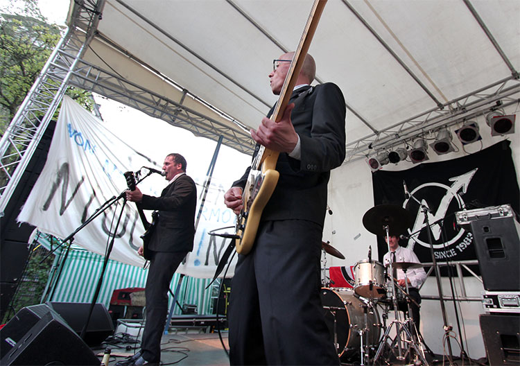 Zunächst also: THE MOVEMENT. Hmpf. Ausgerechnet ich wurde auserkoren, den Auftritt der Band zu dokumentieren. Das ist ungefähr so, als sollten SLAYER eine Laudatio auf den Papst halten. Nun, gehen wir es an. EXPLOITED haben mal einen Song namens „Fuck the Mods“ geschrieben – und Recht hatten sie. Soll heißen, mit Mod-Mucke bin ich noch nie recht warm geworden, und das hat sich auch beim gestrigen Auftritt von THE MOVEMENT nicht geändert. Das dänische Trio wurde um die Jahrtausendwende in Kopenhagen gegründet, 2007 wieder aufgelöst und vor drei Jahren reformiert.