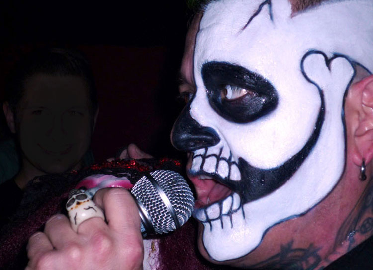DeLeon (Gesang/Gitarre) trat wie gewohnt mit prägnant geschminktem Gesicht – die linke Hälfte als Totenkopf (sein Markenzeichen) –