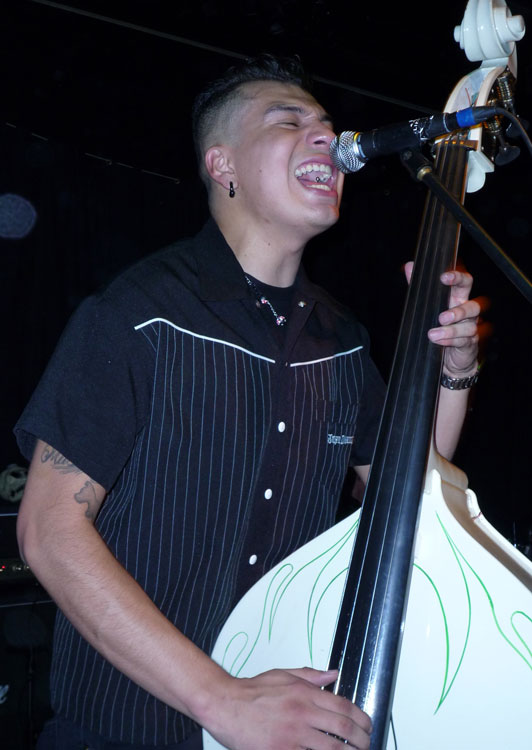 REZUREX vermischen Psychobilly, Horrorpunk und den Rock’n Roll der Sechziger zu einem bestens tanzbaren Cocktail, auch im gut gefüllten Konzerträumchen des Kulturpalastes verwandelte sich der Platz vor der Bühne nach wenigen Minuten in einen Moshpit.