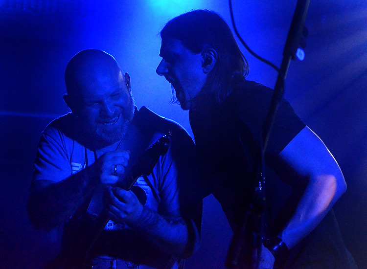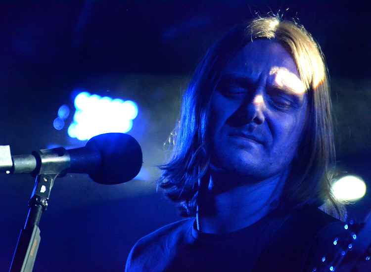 Zum anderen, weil trotz aller komplexen Arrangements hier eine Spielfreude vorherrscht, die ihresgleichen sucht. Songs von 12 Minuten Länge aufwärts können eben, wie bei YES, in ermüdendes Griffbrettgewichse ausarten, so dass der doktorhut-tragende Connaisseur beeindruckt sitzend applaudiert, oder aber als eine bewegungsreiche Party inszeniert werden, bei der Kopf, Beine und Herz gleichermaßen angesprochen werden.RIVERSIDE rocken, meine sehr verehrten Leser. In Darmstadt wurde in Zitat und Sound öfter an DEEP PURPLE zu ihren besten Zeiten erinnert; in Aschaffenburg wurde der polnische Avantgardist Krzysztof Komeda mit dem